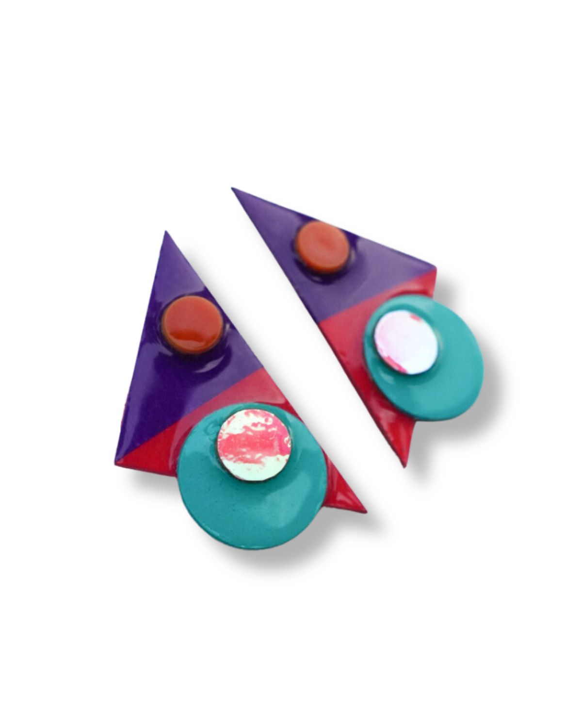 Triangle Love is a continuous collection of bold colorful triangle shapes. Every angle represents a facet of your unique personality and style. Like the vertices of a dream, these earrings symbolize the points where creativity, elegance, and self-expression intersect. Just as each side of a triangle lends stability to its form, let these earrings remind you of your inner strength and resilience. Wear them not just as jewelry, but as a statement of the masterpiece you are!