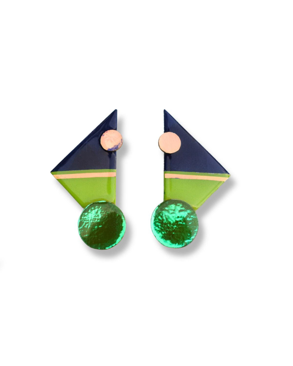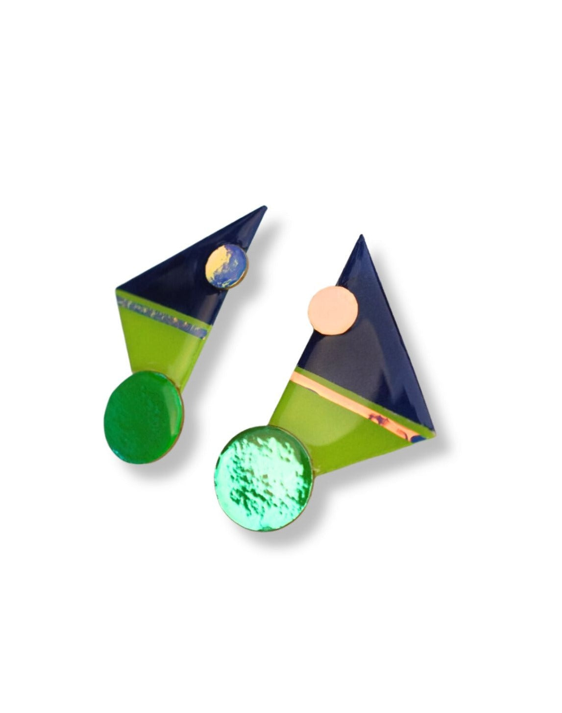 Triangle Love is a continuous collection of bold colorful triangle shapes. Every angle represents a facet of your unique personality and style. Like the vertices of a dream, these earrings symbolize the points where creativity, elegance, and self-expression intersect. Just as each side of a triangle lends stability to its form, let these earrings remind you of your inner strength and resilience. Wear them not just as jewelry, but as a statement of the masterpiece you are!