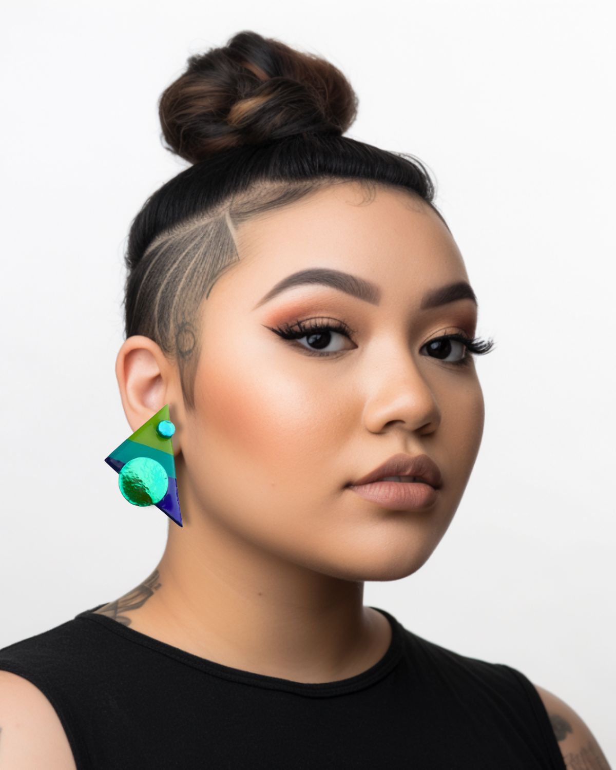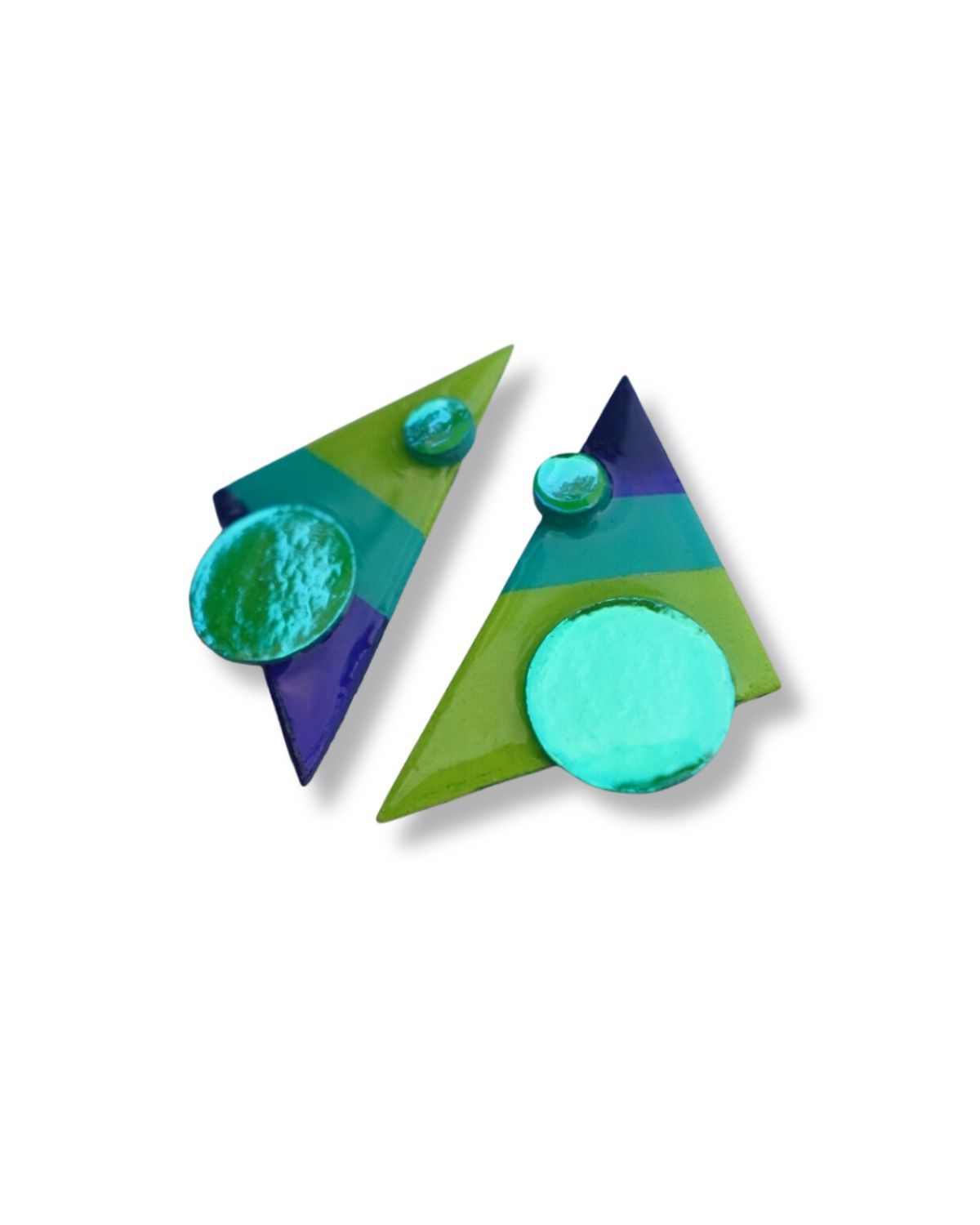 Triangle Love is a continuous collection of bold colorful triangle shapes. Every angle represents a facet of your unique personality and style. Like the vertices of a dream, these earrings symbolize the points where creativity, elegance, and self-expression intersect. Just as each side of a triangle lends stability to its form, let these earrings remind you of your inner strength and resilience. Wear them not just as jewelry, but as a statement of the masterpiece you are!