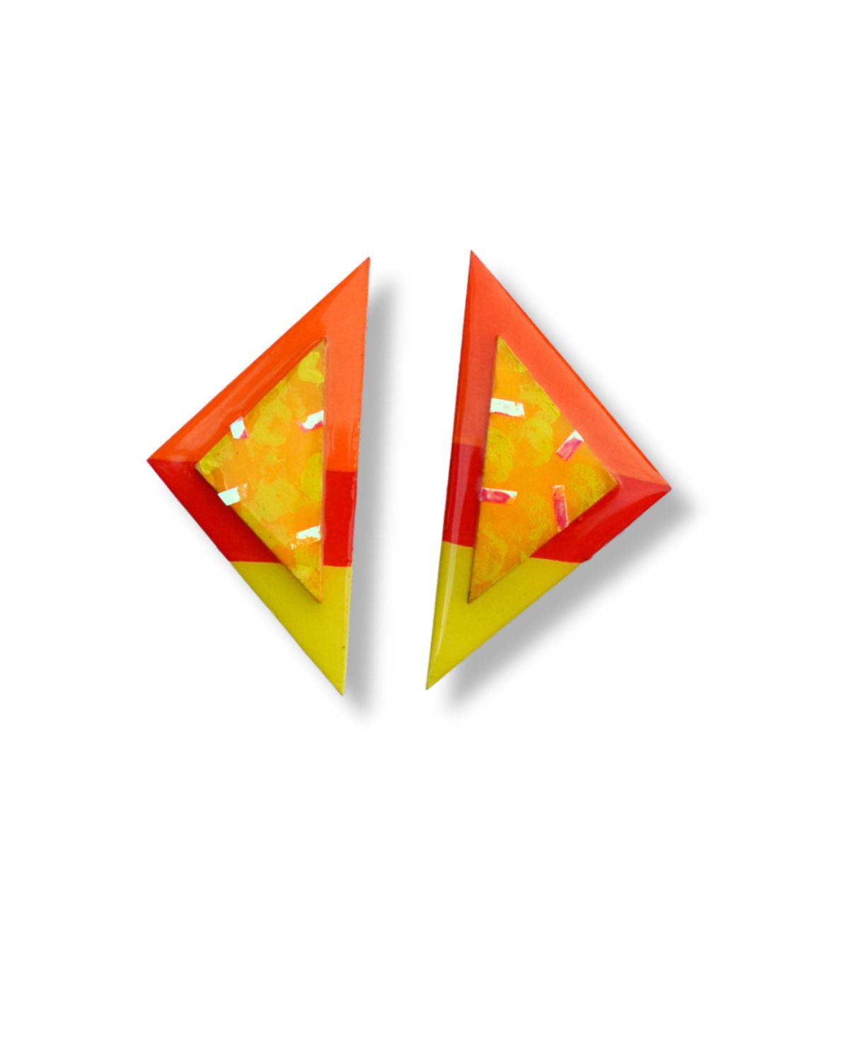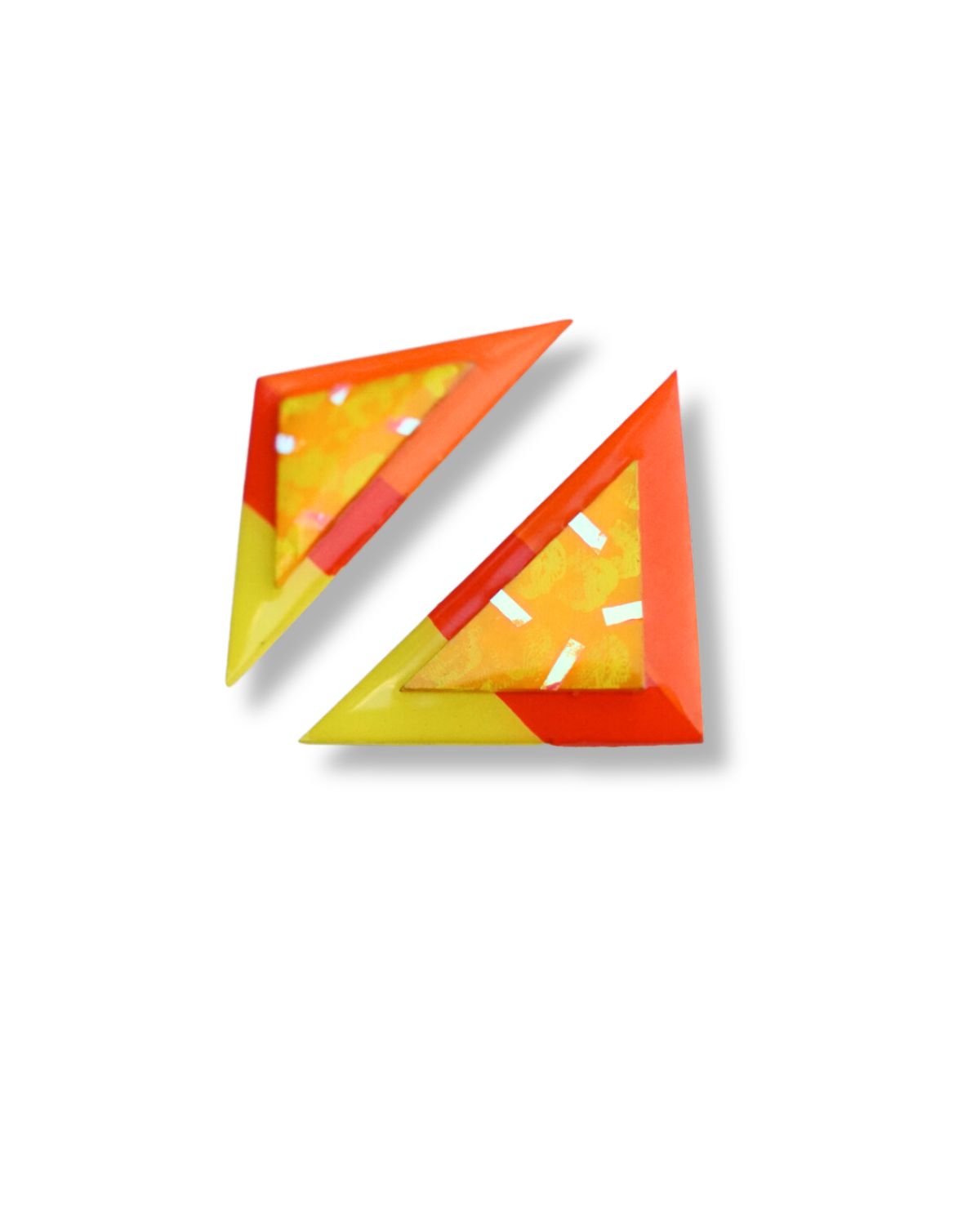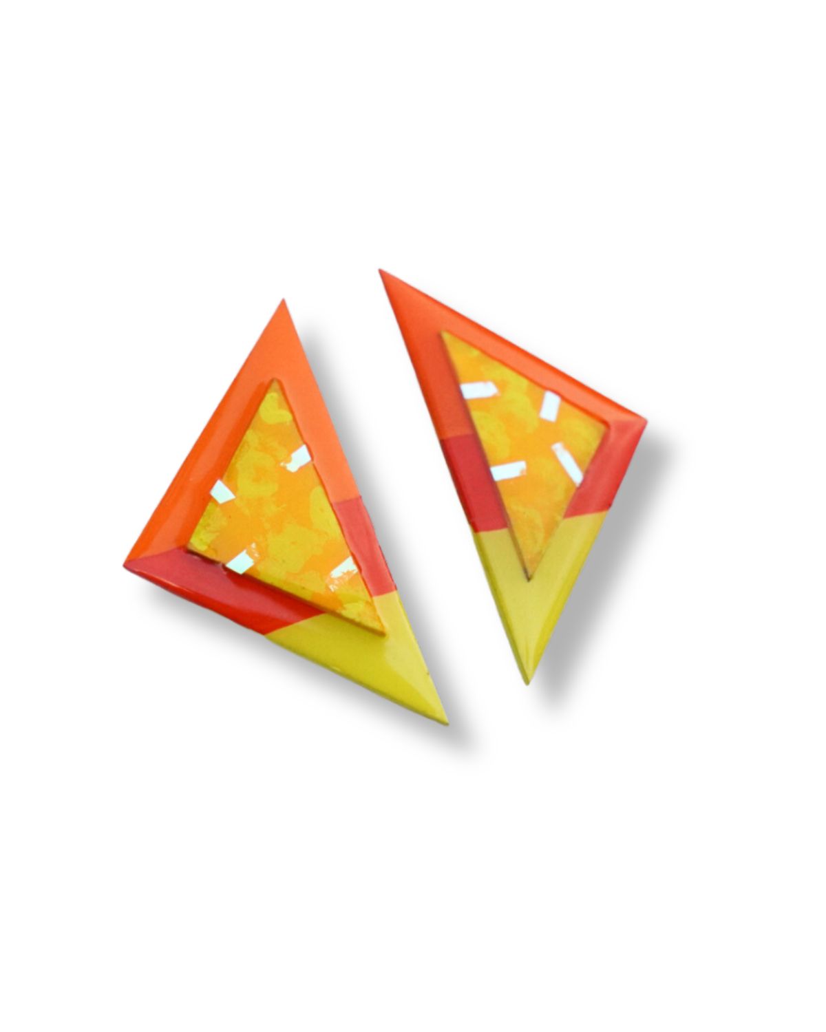 Triangle Love is a continuous collection of bold colorful triangle shapes. Every angle represents a facet of your unique personality and style. Like the vertices of a dream, these earrings symbolize the points where creativity, elegance, and self-expression intersect. Just as each side of a triangle lends stability to its form, let these earrings remind you of your inner strength and resilience. Wear them not just as jewelry, but as a statement of the masterpiece you are!