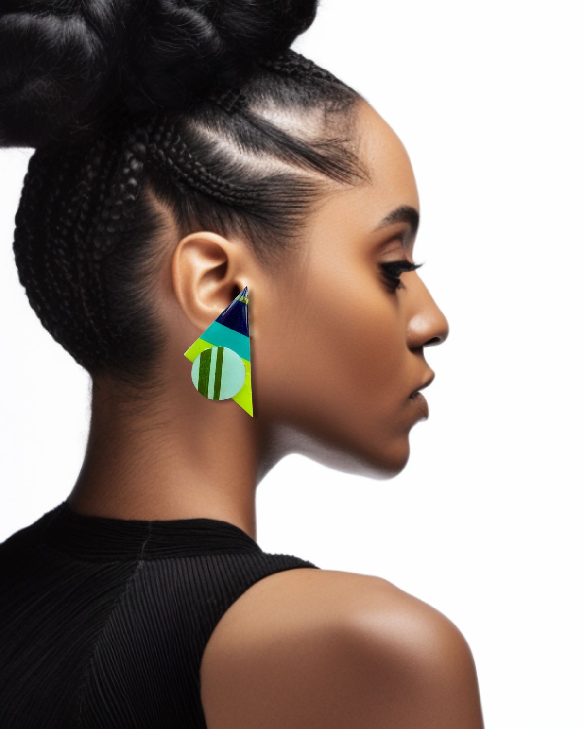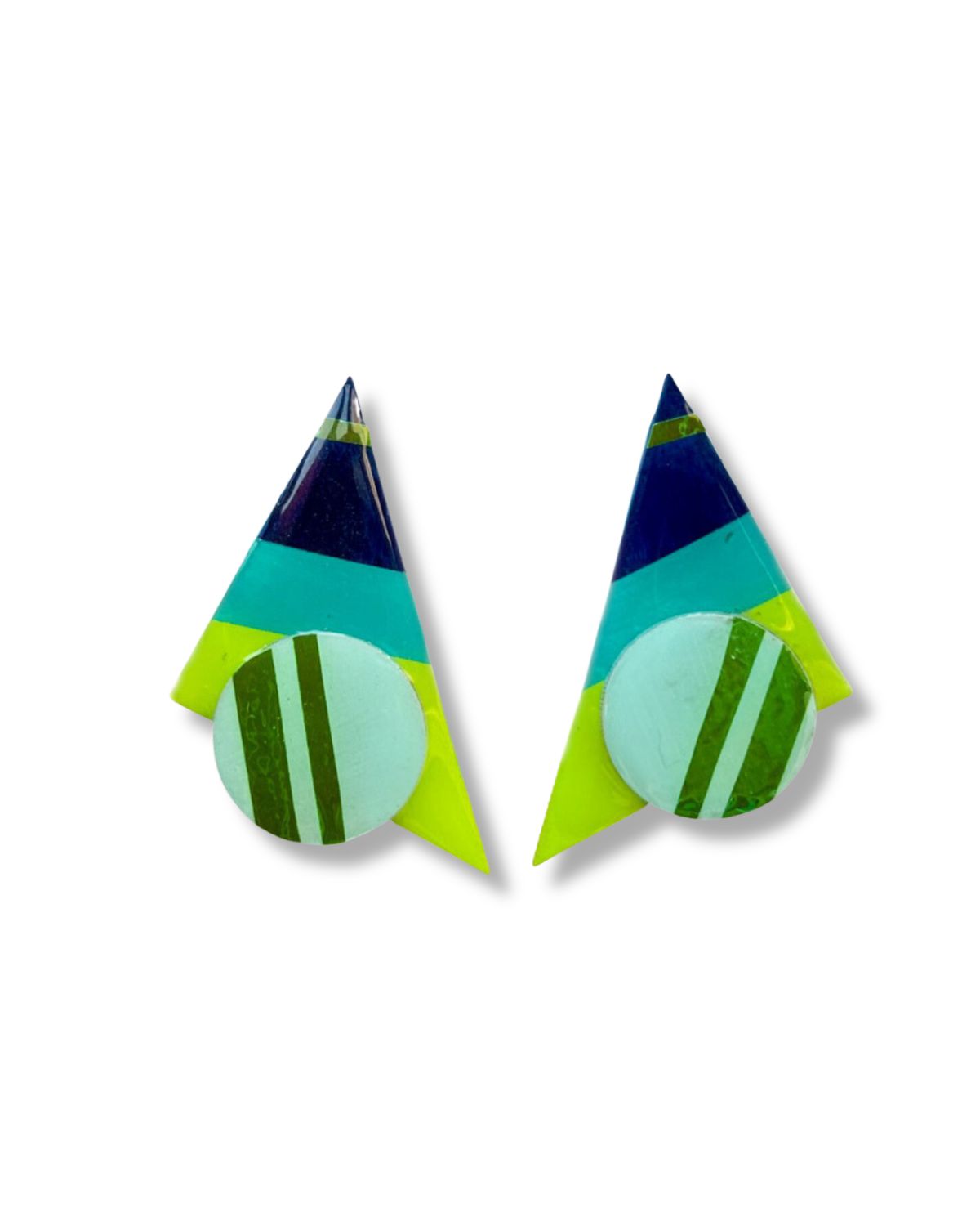 Triangle Love is a continuous collection of bold colorful triangle shapes. Every angle represents a facet of your unique personality and style. Like the vertices of a dream, these earrings symbolize the points where creativity, elegance, and self-expression intersect. Just as each side of a triangle lends stability to its form, let these earrings remind you of your inner strength and resilience. Wear them not just as jewelry, but as a statement of the masterpiece you are!