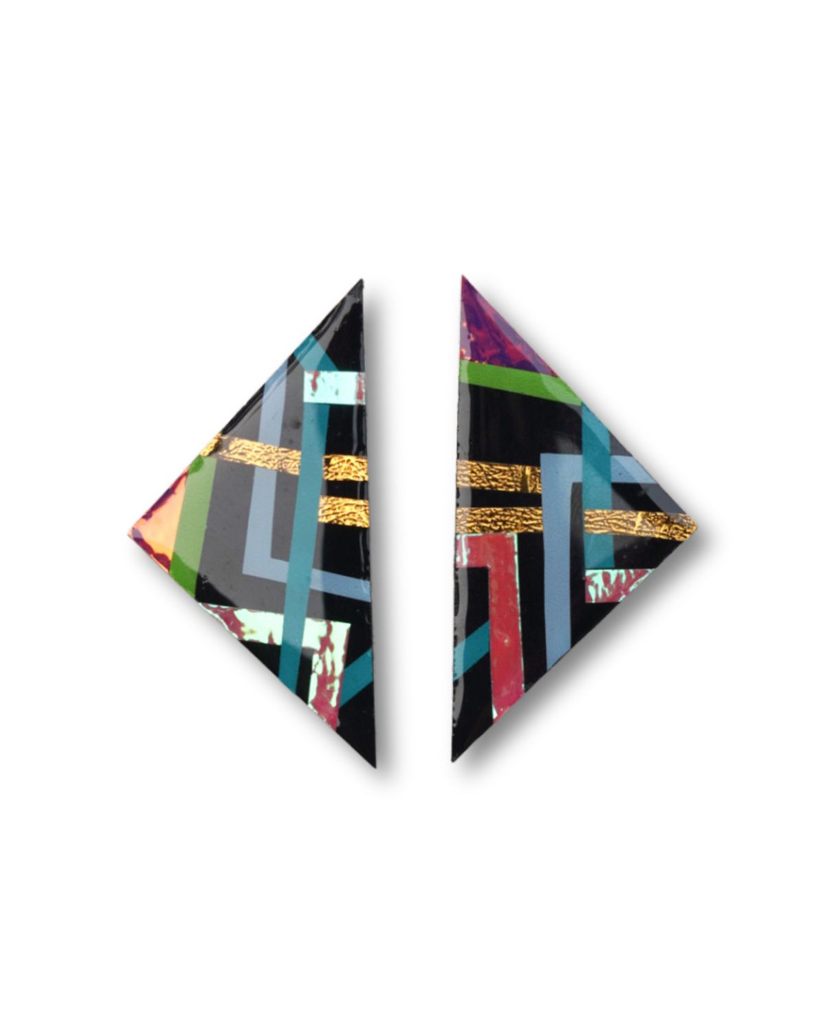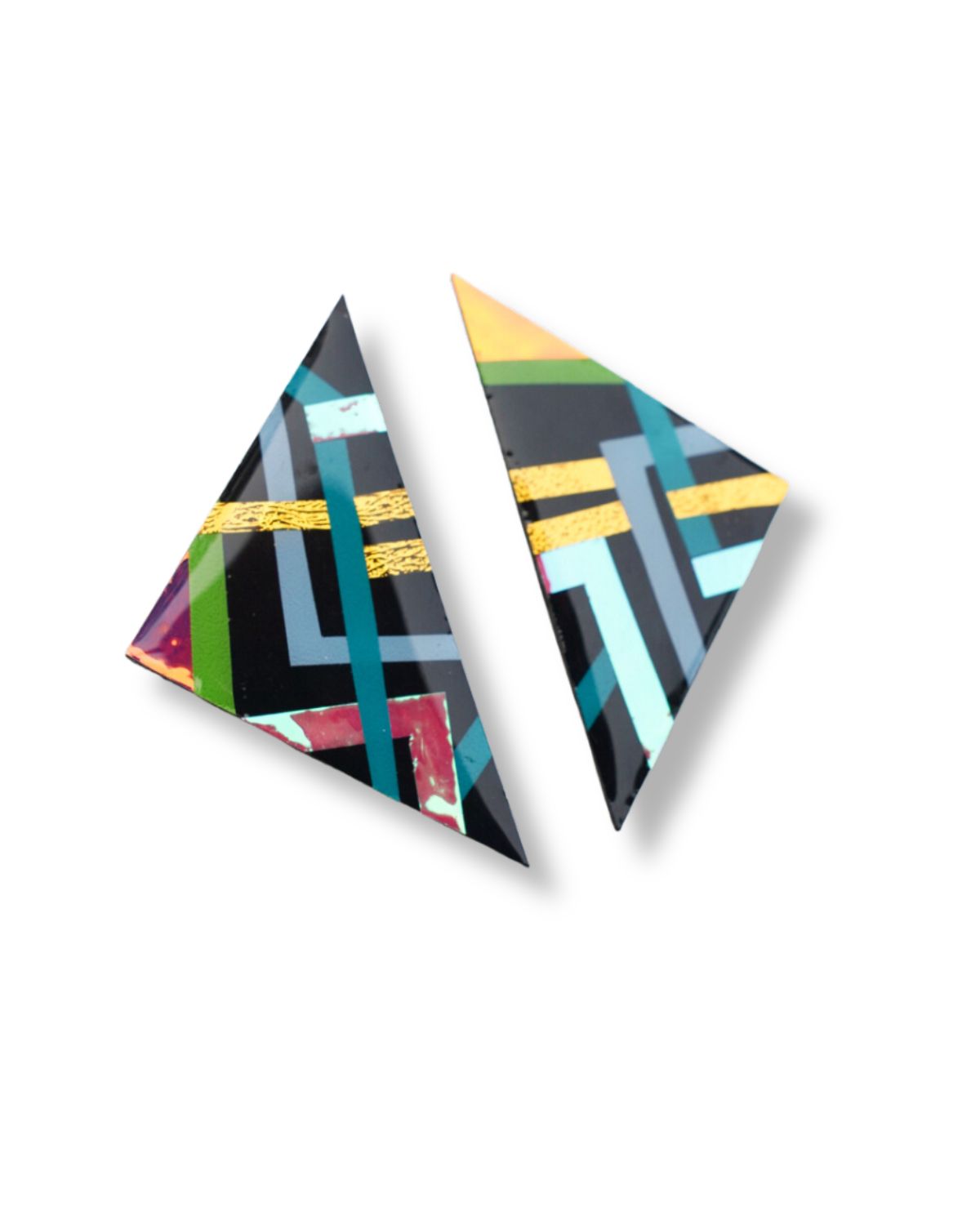 Triangle Love is a continuous collection of bold colorful triangle shapes. Every angle represents a facet of your unique personality and style. Like the vertices of a dream, these earrings symbolize the points where creativity, elegance, and self-expression intersect. Just as each side of a triangle lends stability to its form, let these earrings remind you of your inner strength and resilience. Wear them not just as jewelry, but as a statement of the masterpiece you are!