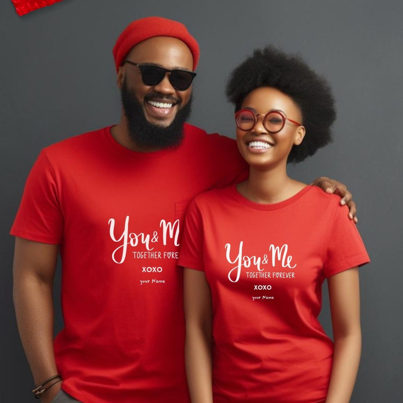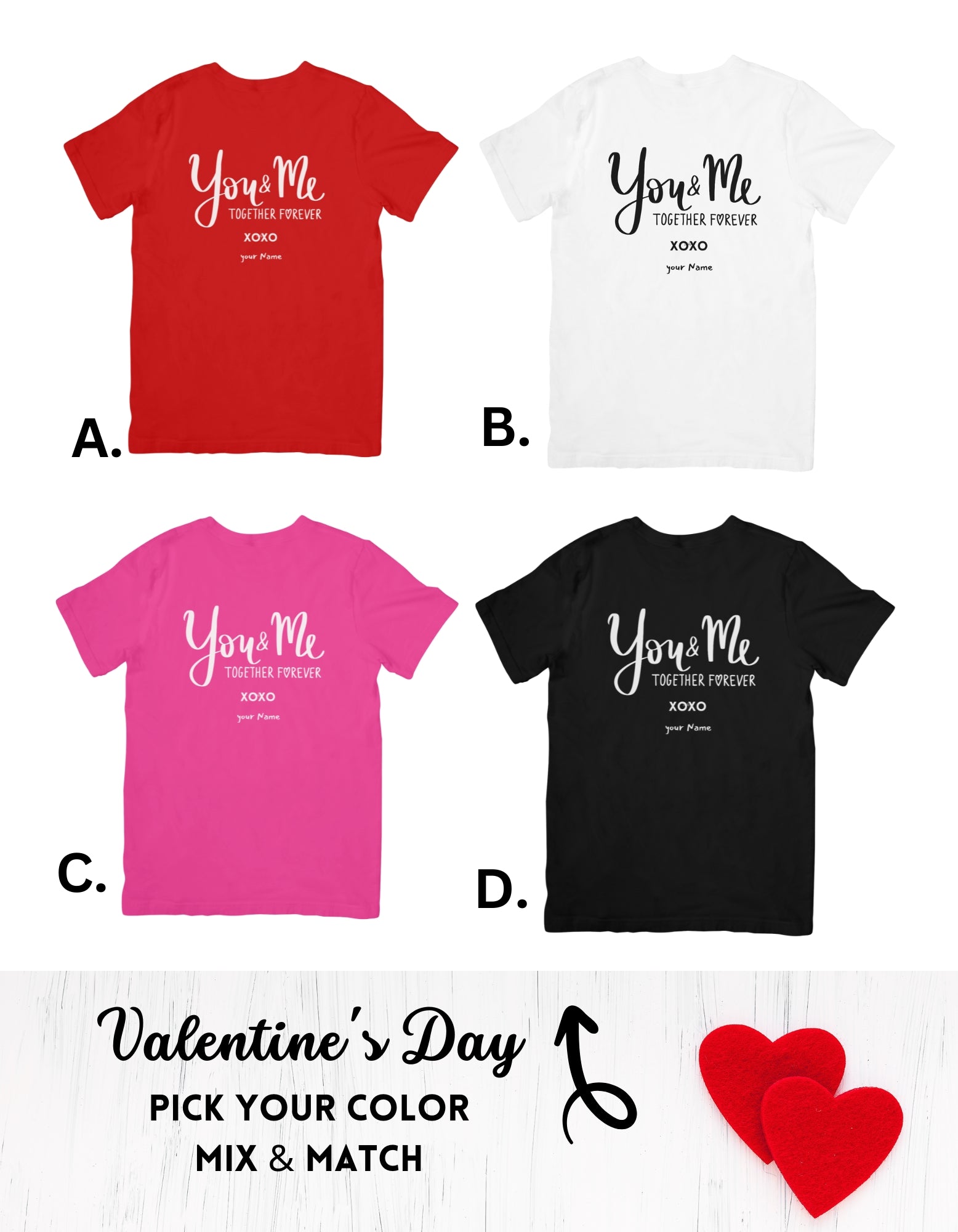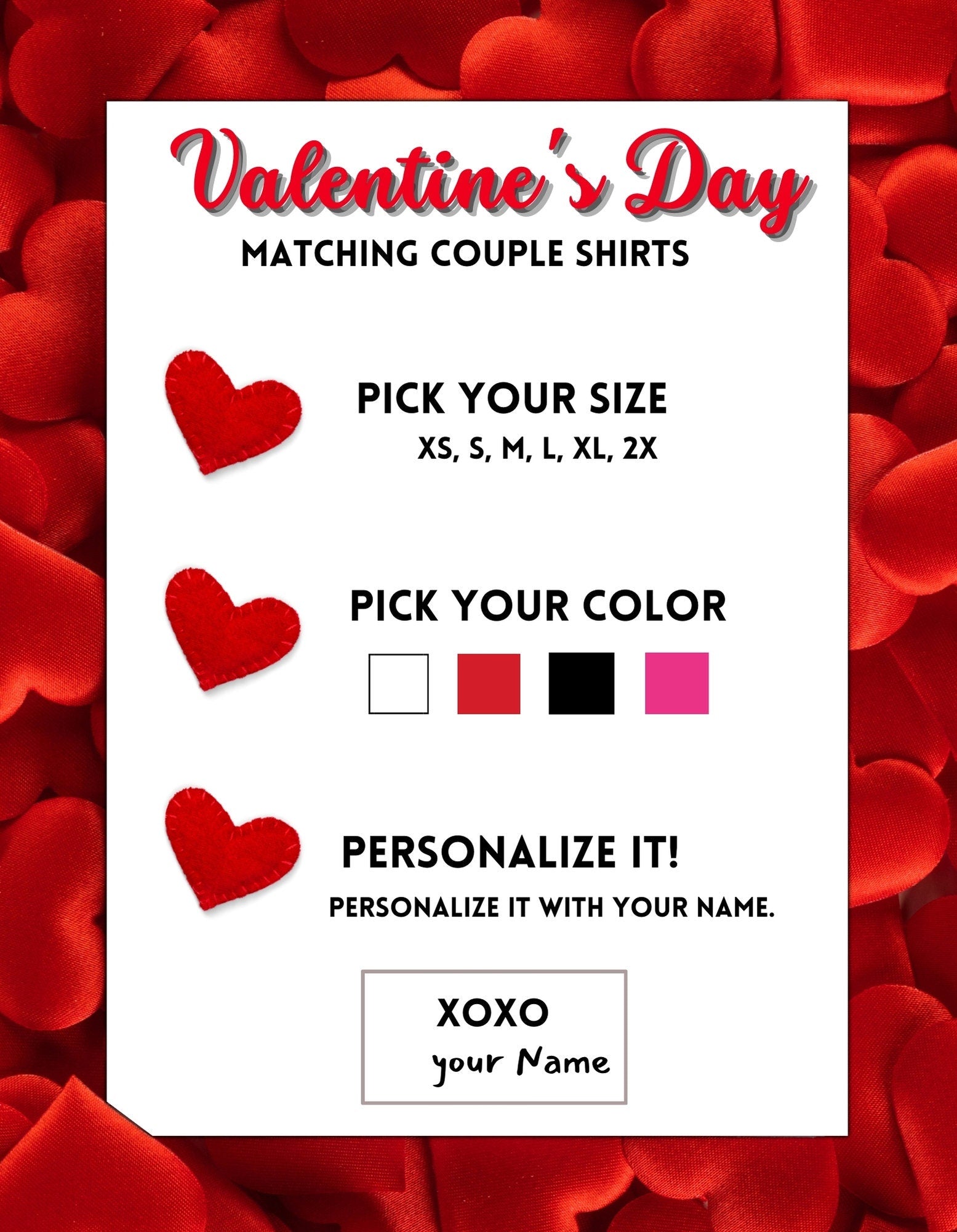 Celebrate LOVE in style with our classic Unisex T-shirt sets. Enjoy Mixing and Matching or adding a personal touch by adding your names! Our Valentine's collection features an array of 4 colors Black, White, Red & Pink.